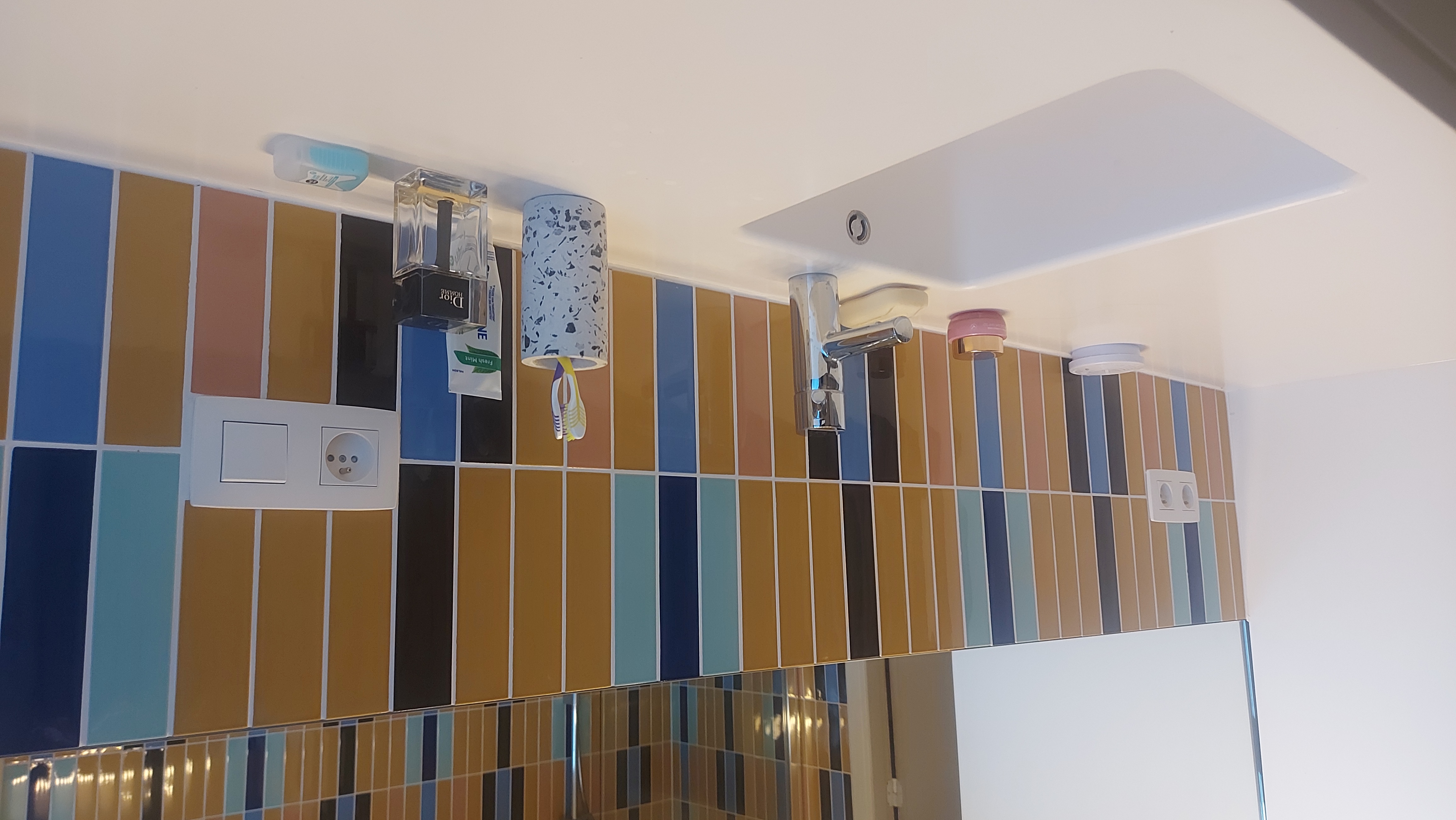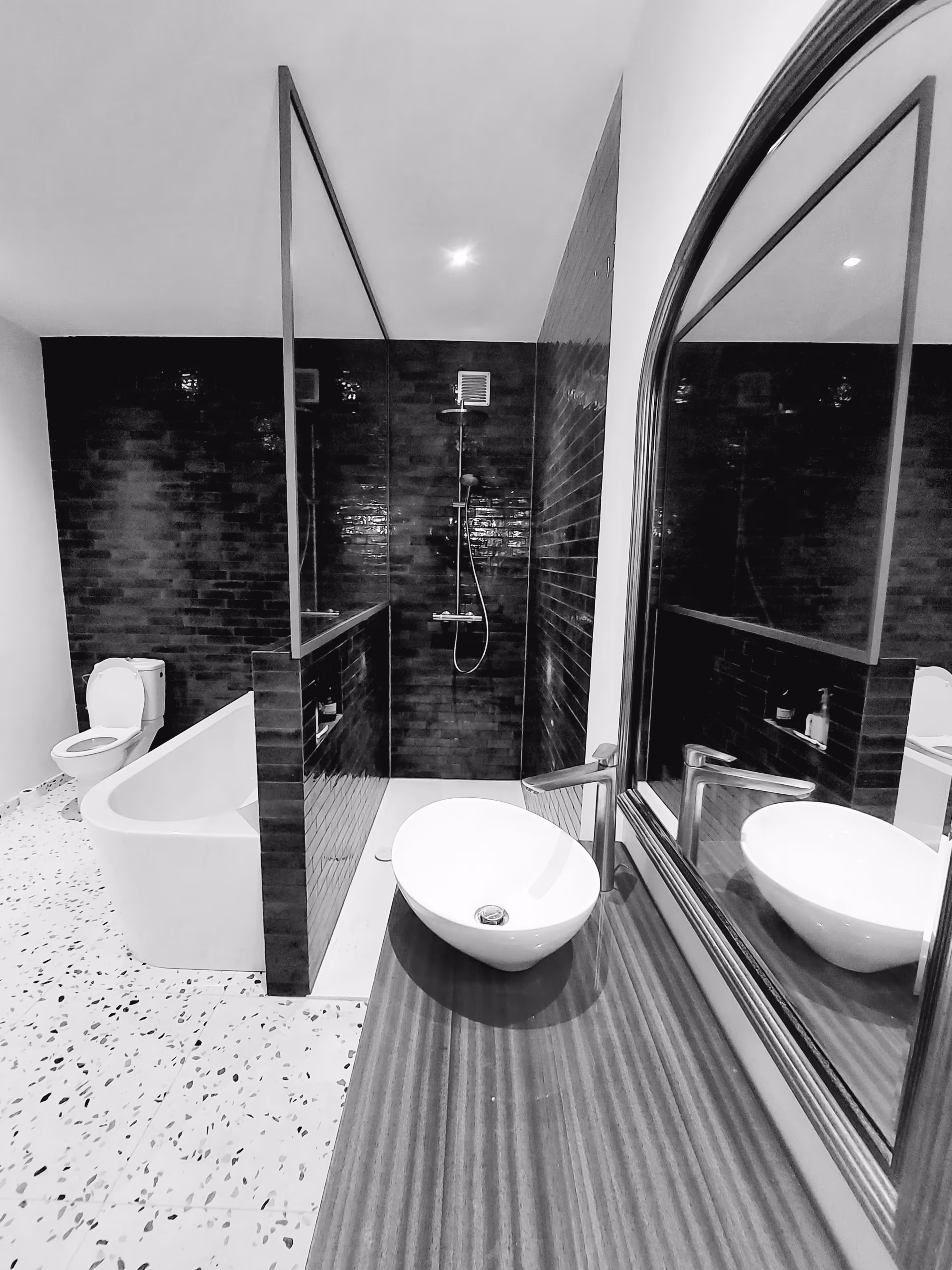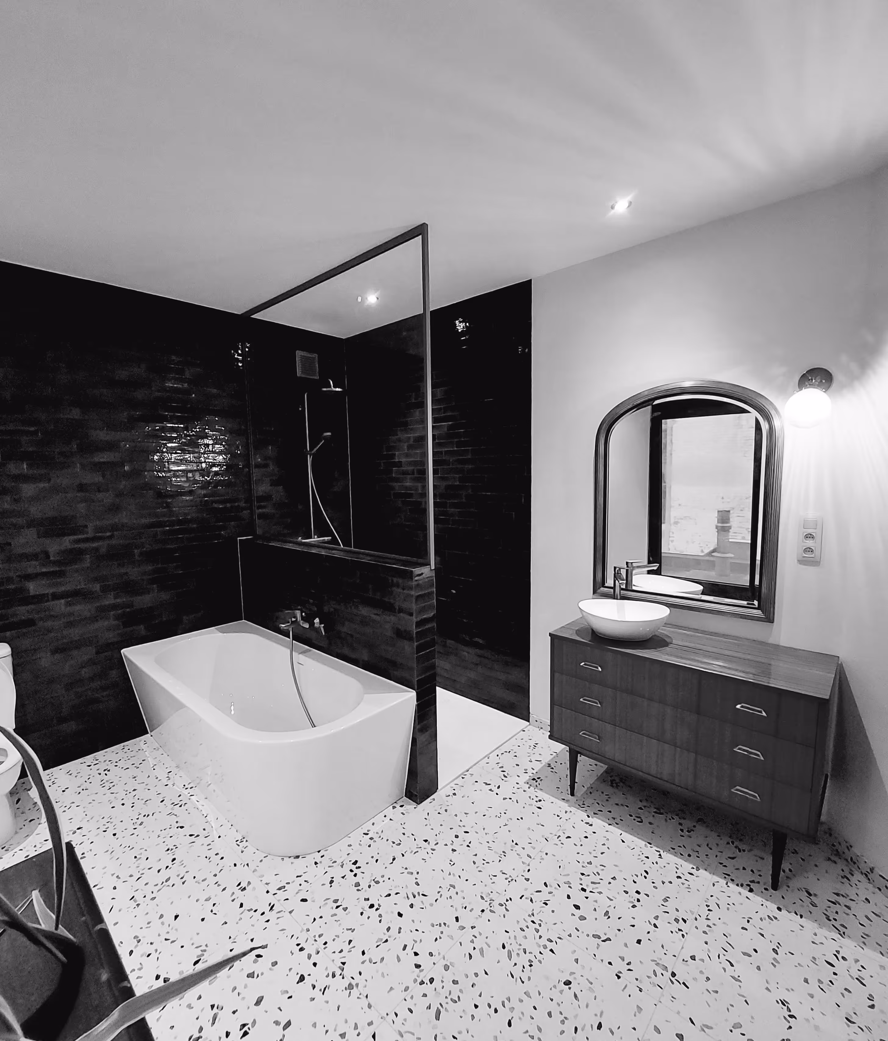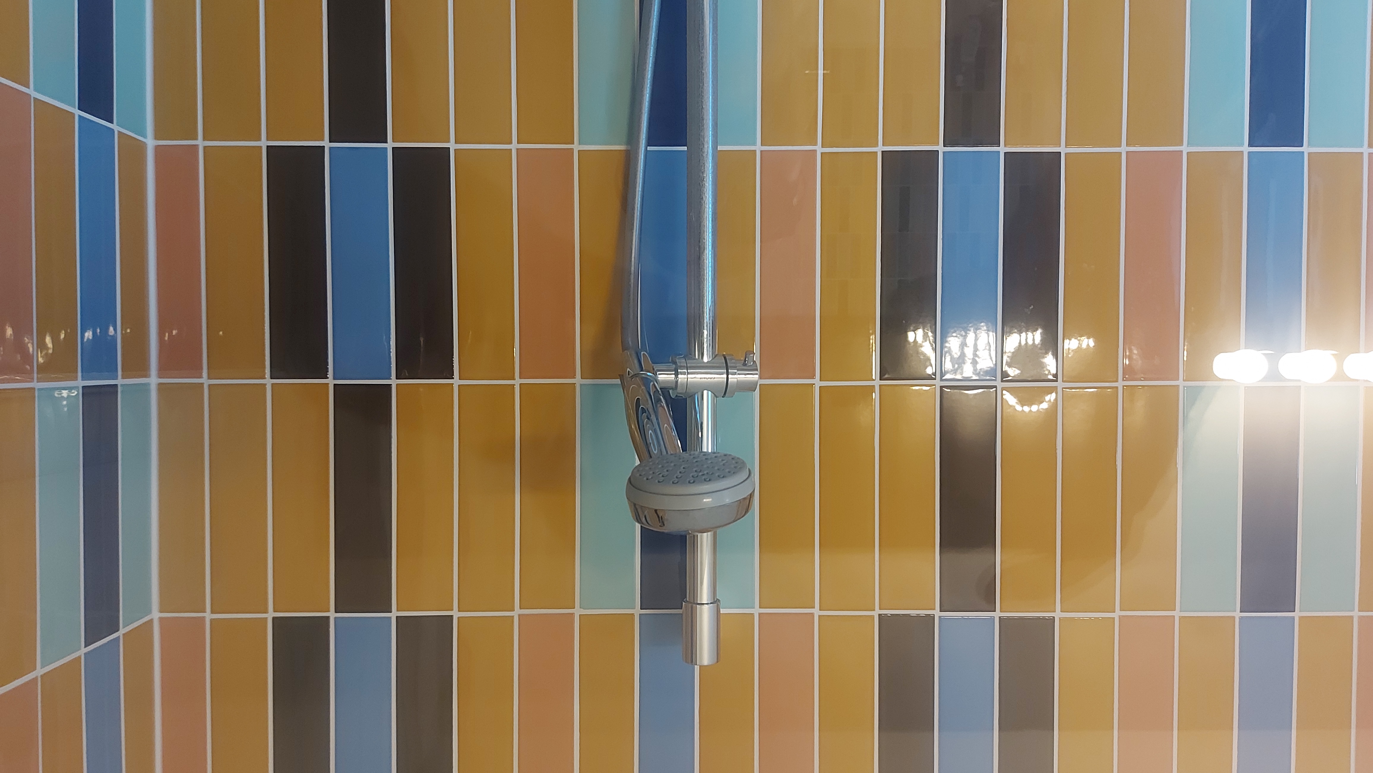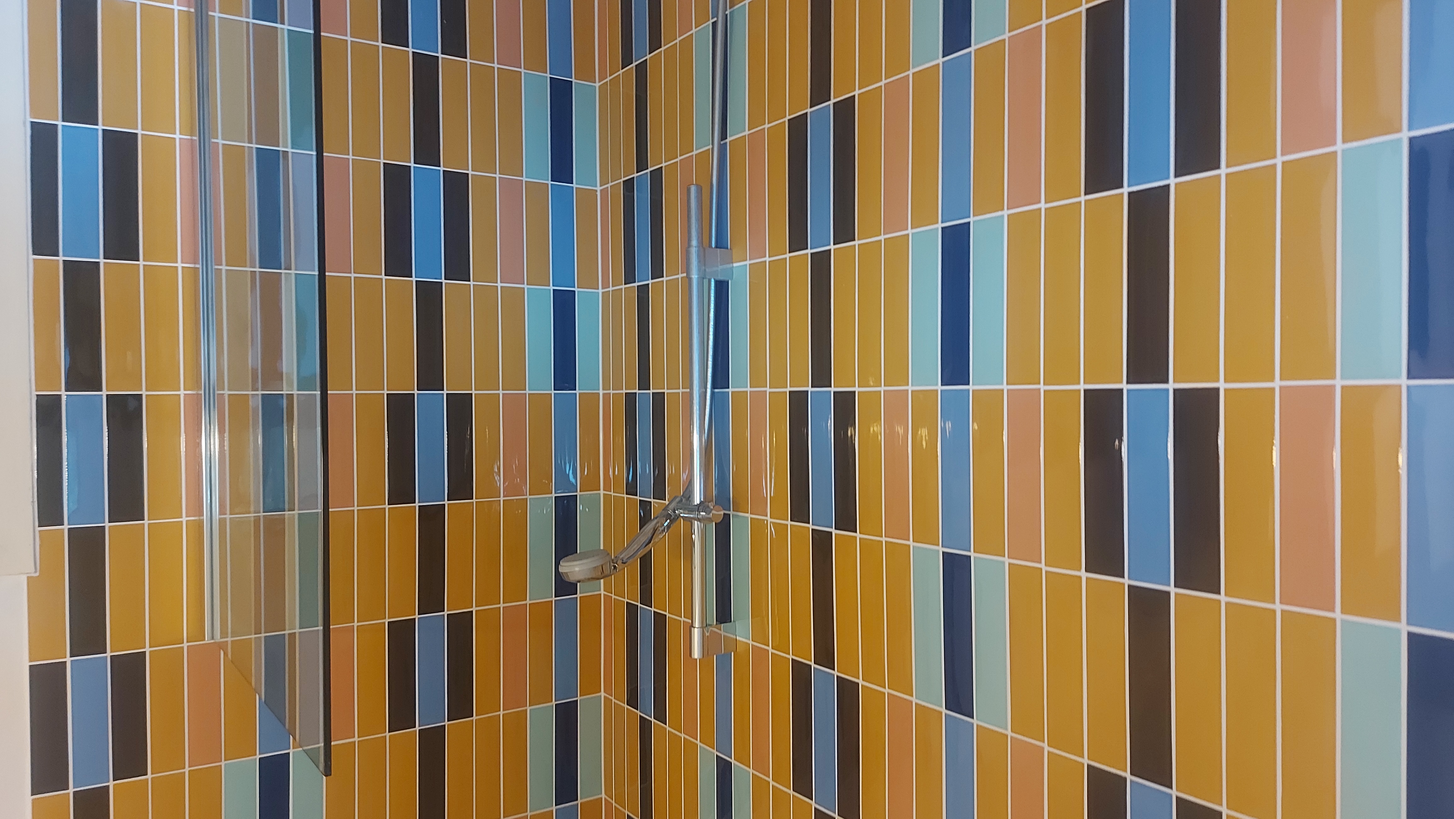 Renovatie bestaande badkamer, met moderne materialen met een gewaagd tegeldesign.