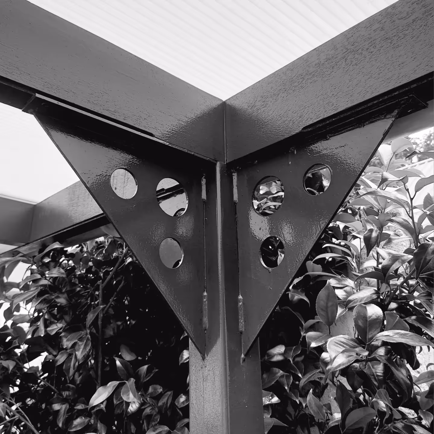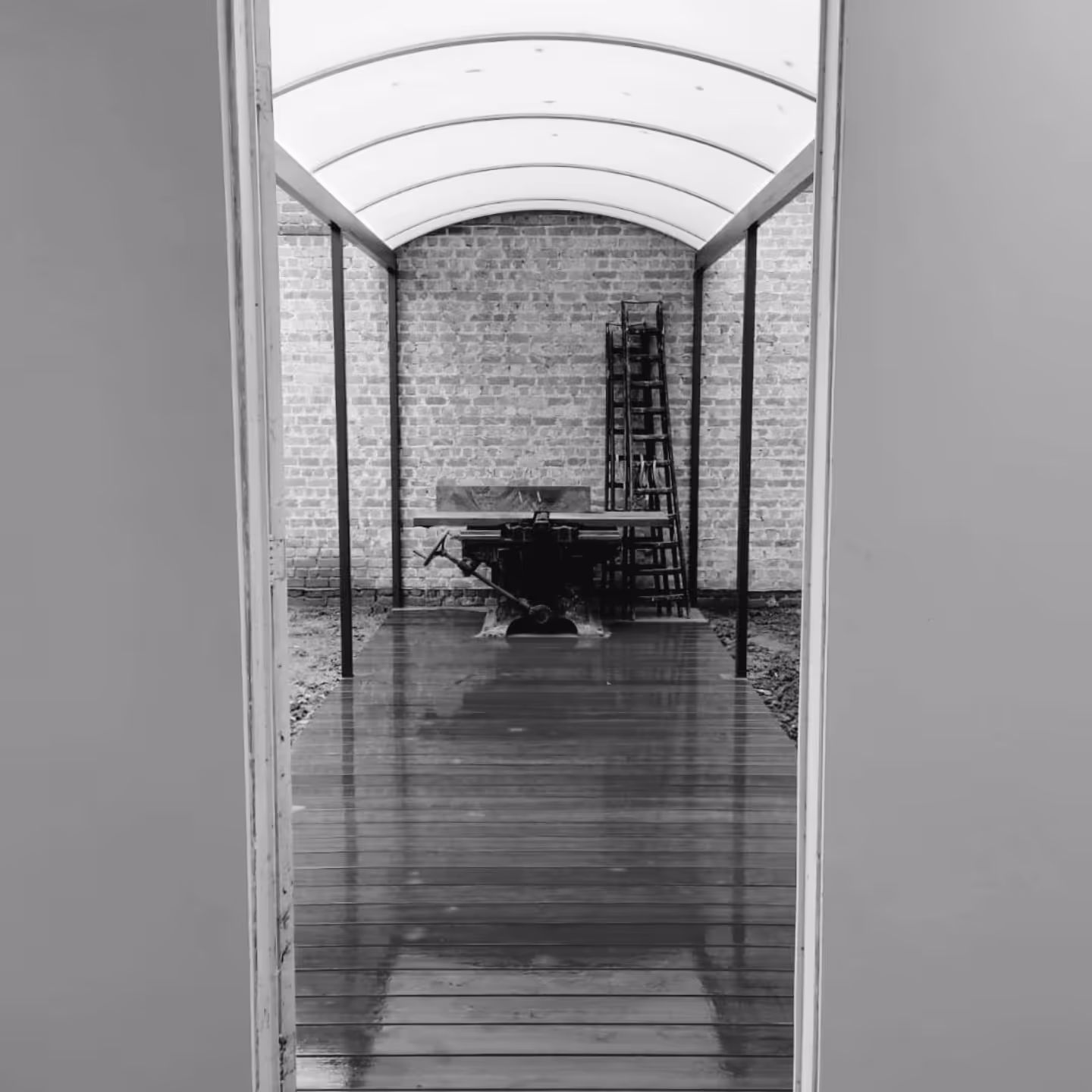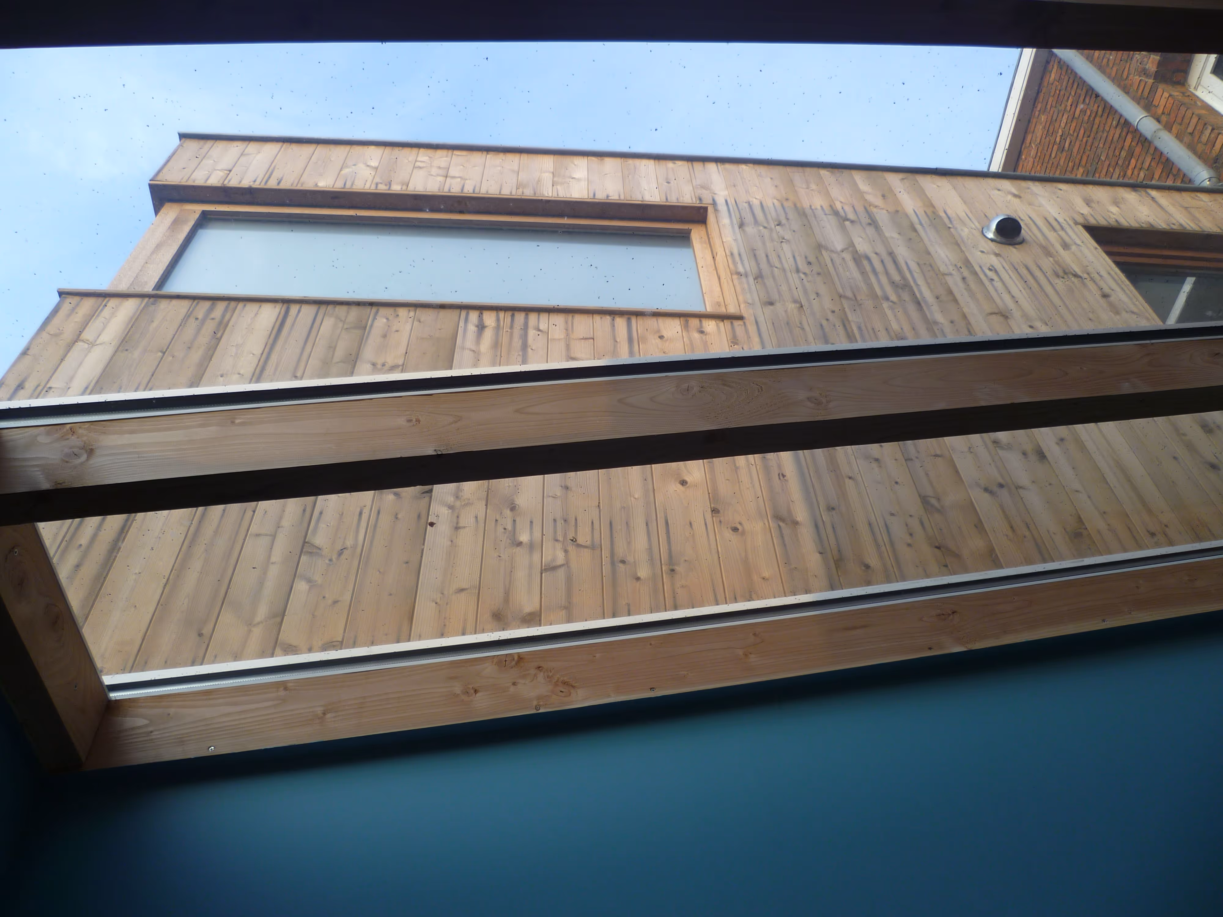 Deze constructie werd opgebouwd uit een houten skelet bekleed met een hardhouten gevelbeplating (Merbau). De volledige binnenafwerking werd uitgevoerd in gipskartonplaten.